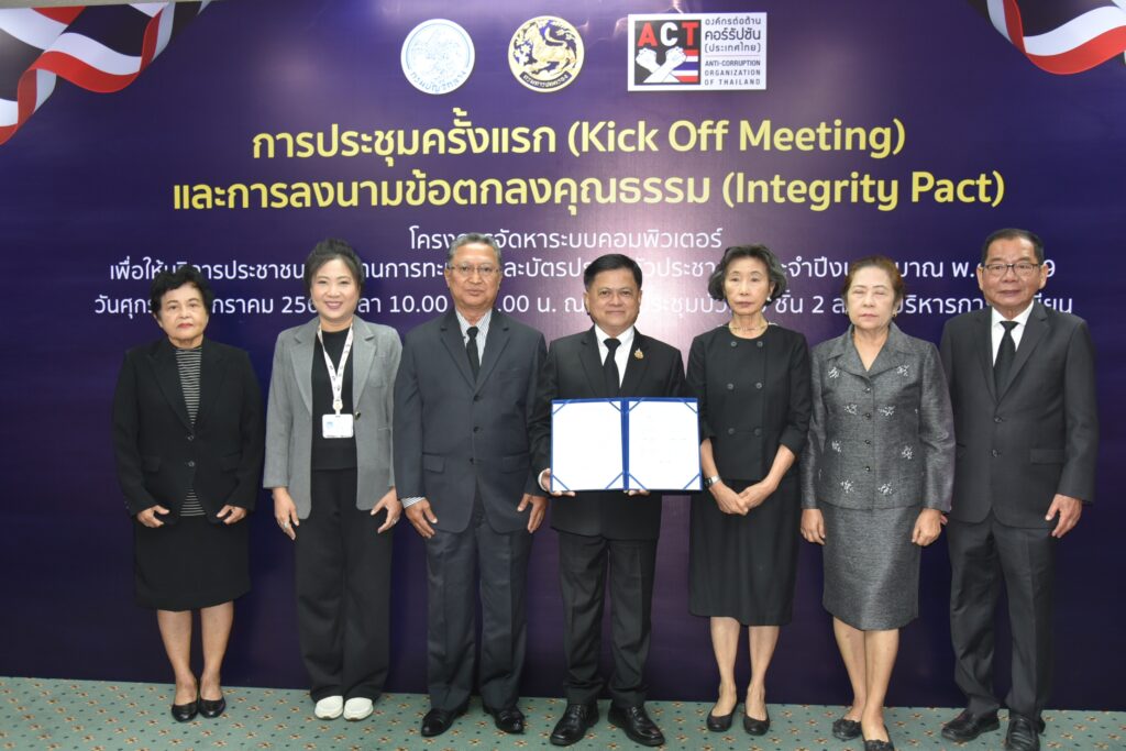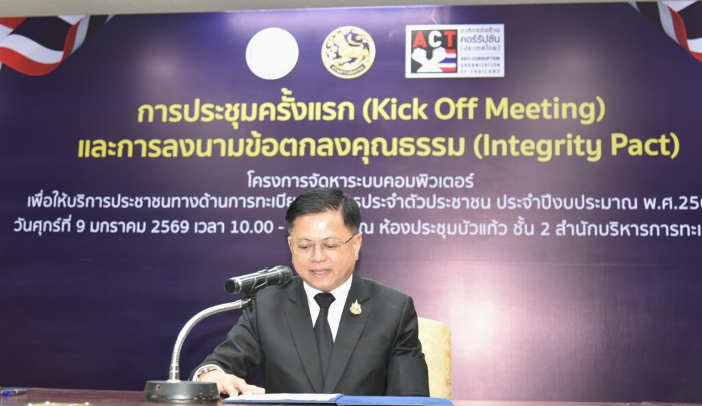 นายนฤชา โฆษาศิวิไลซ์ อธิบดีกรมการปกครอง ตรวจเยี่ยมสำนักบริหารการทะเบียน เข้าร่วมการประชุมเริ่มต้นโครงการ (Kick-Off Meeting) และลงนามในข้อตกลงคุณธรรม (Integrity Pact) โครงการจัดหาระบบคอมพิวเตอร์เพื่อให้บริการประชาชนทางด้านการทะเบียนและบัตรประจำตัวประชาชน ประจำปีงบประมาณ พ.ศ. 2569 โดยมีนายสุภณ สยามบุญนัญ ผอ.สน.บท. และคณะผู้บริหาร สน.บท. ให้การต้อนรับ วันศุกร์ที่ 9 มกราคม 2569 เวลา 09.30 – 12.00 น. ณ ห้องประชุมบัวขวัญ ชั้น 2 อาคาร ปค. คลอง 9 อ.ลำลูกกา จ.ปทุมธานี
