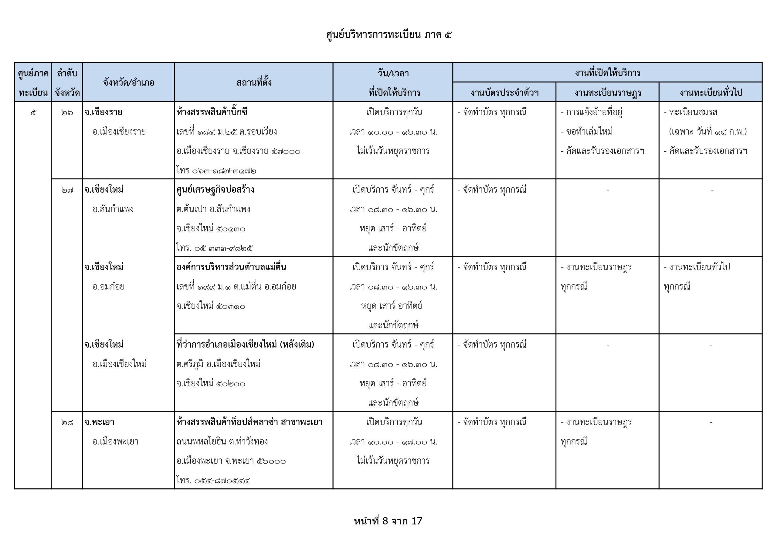 ณ จุดเคาน์เตอร์บริการอำเภอ..ยิ้ม แบ่งตามศบท.ภาค
