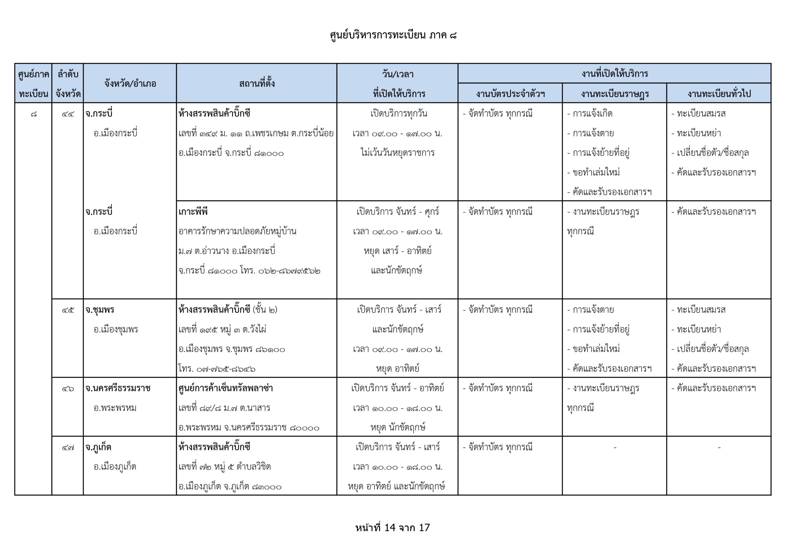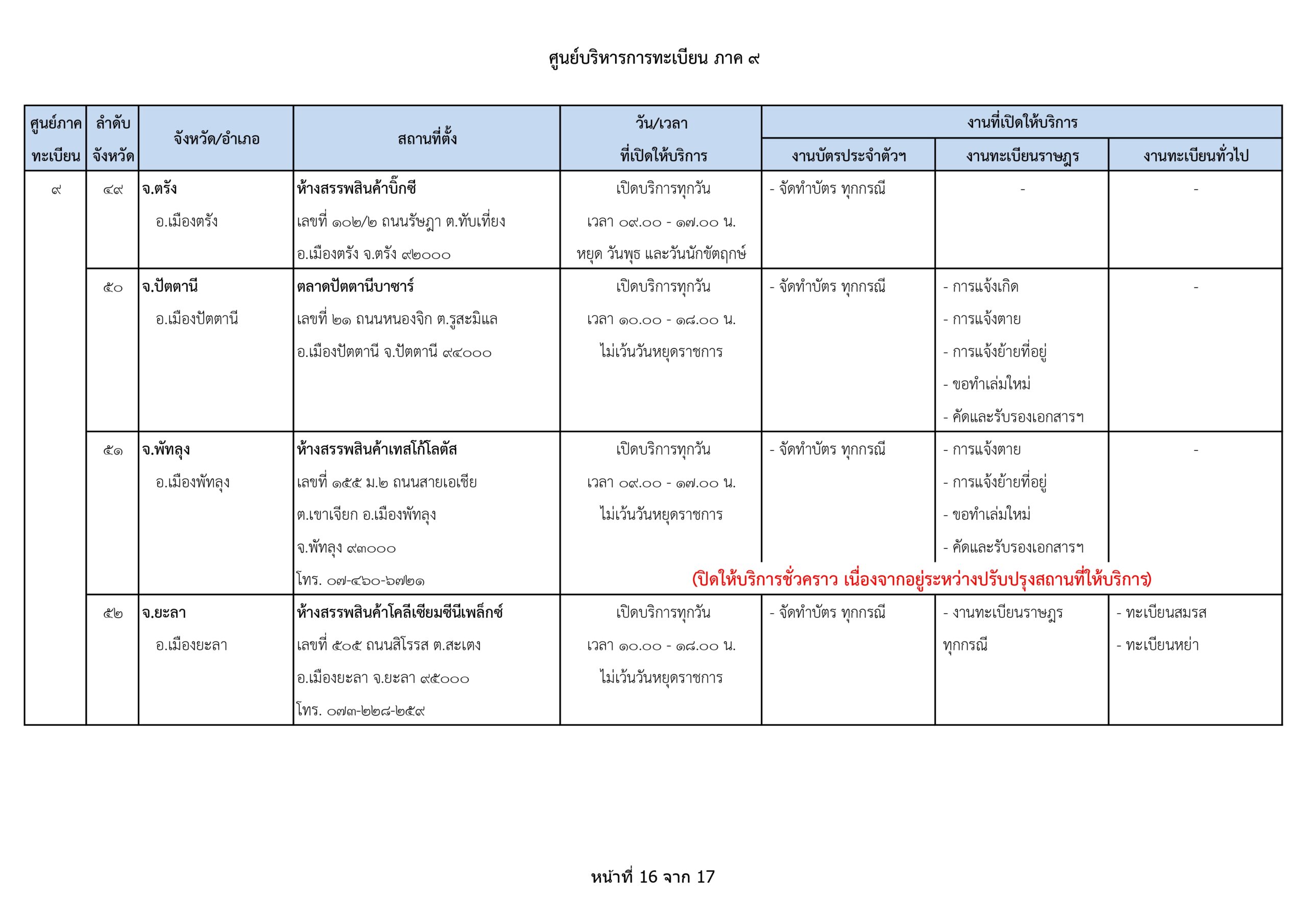 ติดต่อสอบถามจาก ศบท.ภาค/สาขาจังหวัด