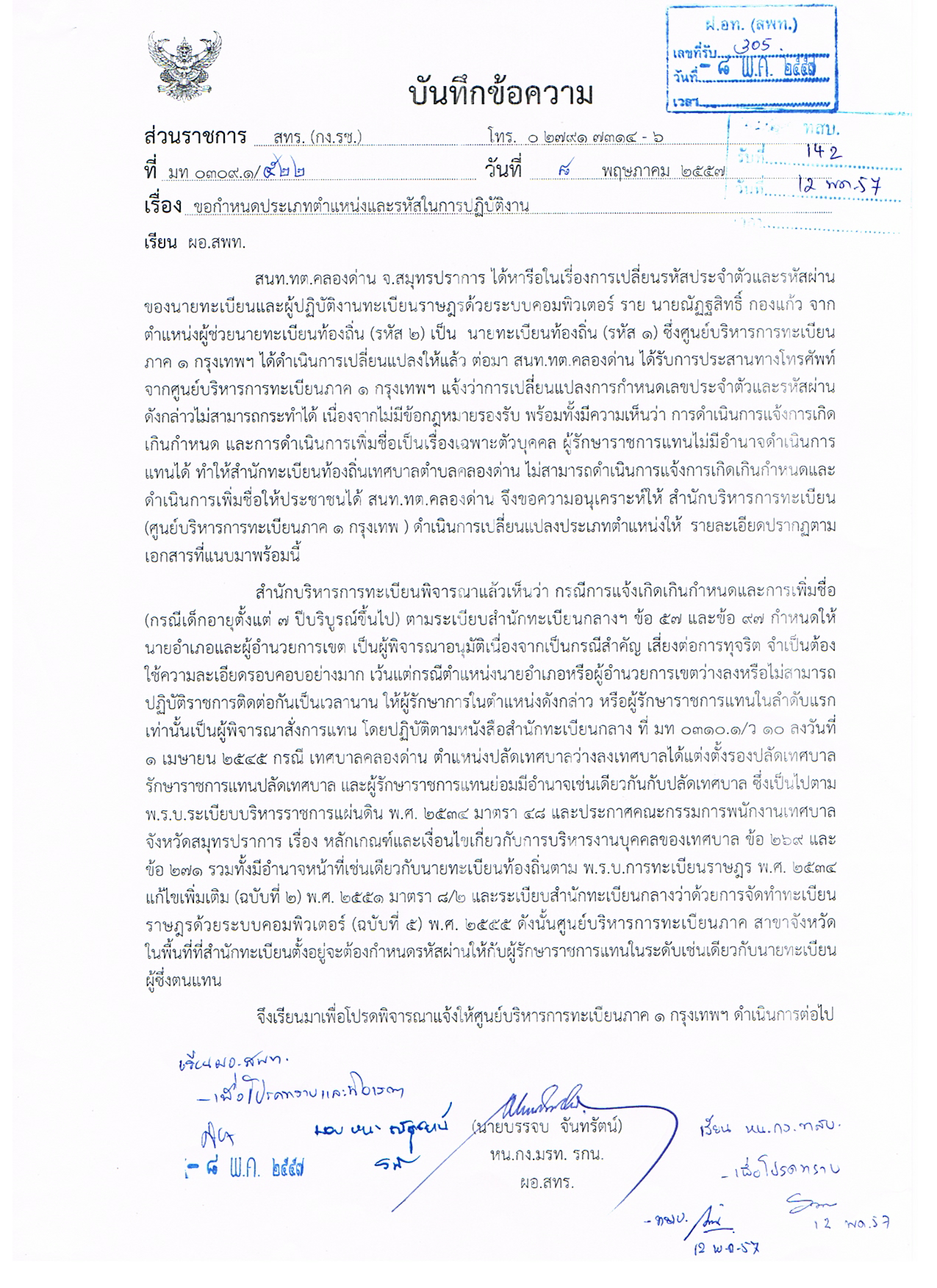 ที่ มท0309.6/ว7210 เรื่อง การป้องกันการทุจริตทางการทะเบียนและบัตรประจำตัวประชาชน