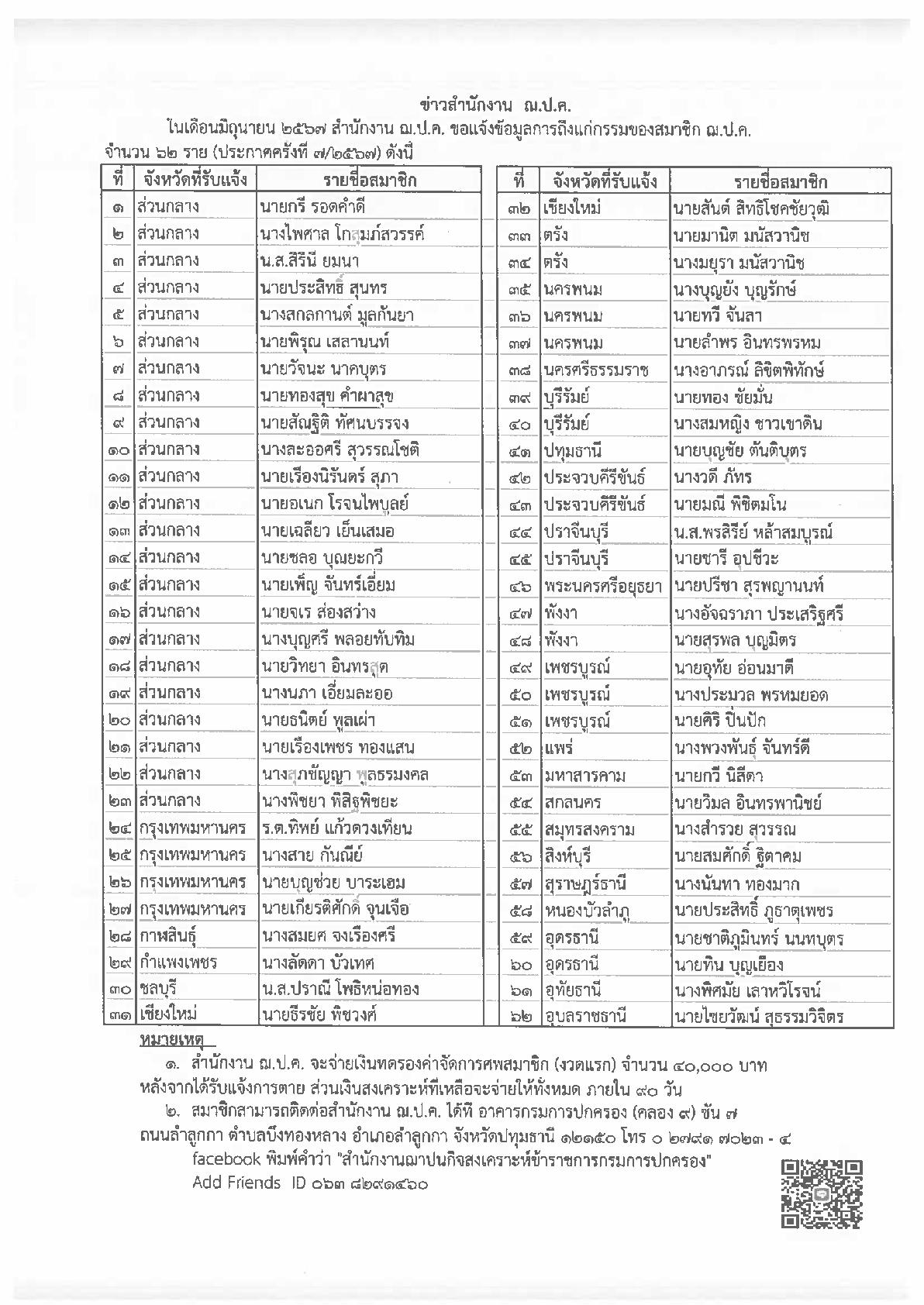 ที่ มท 0309.3/42020 เรื่อง การให้บริการจองชื่อสกุลออนไลน์ 1,010 ชื่อสกุล ตามโครงการให้บริการด้านทะเบียนในงานกาชาด ประจำปี 2567