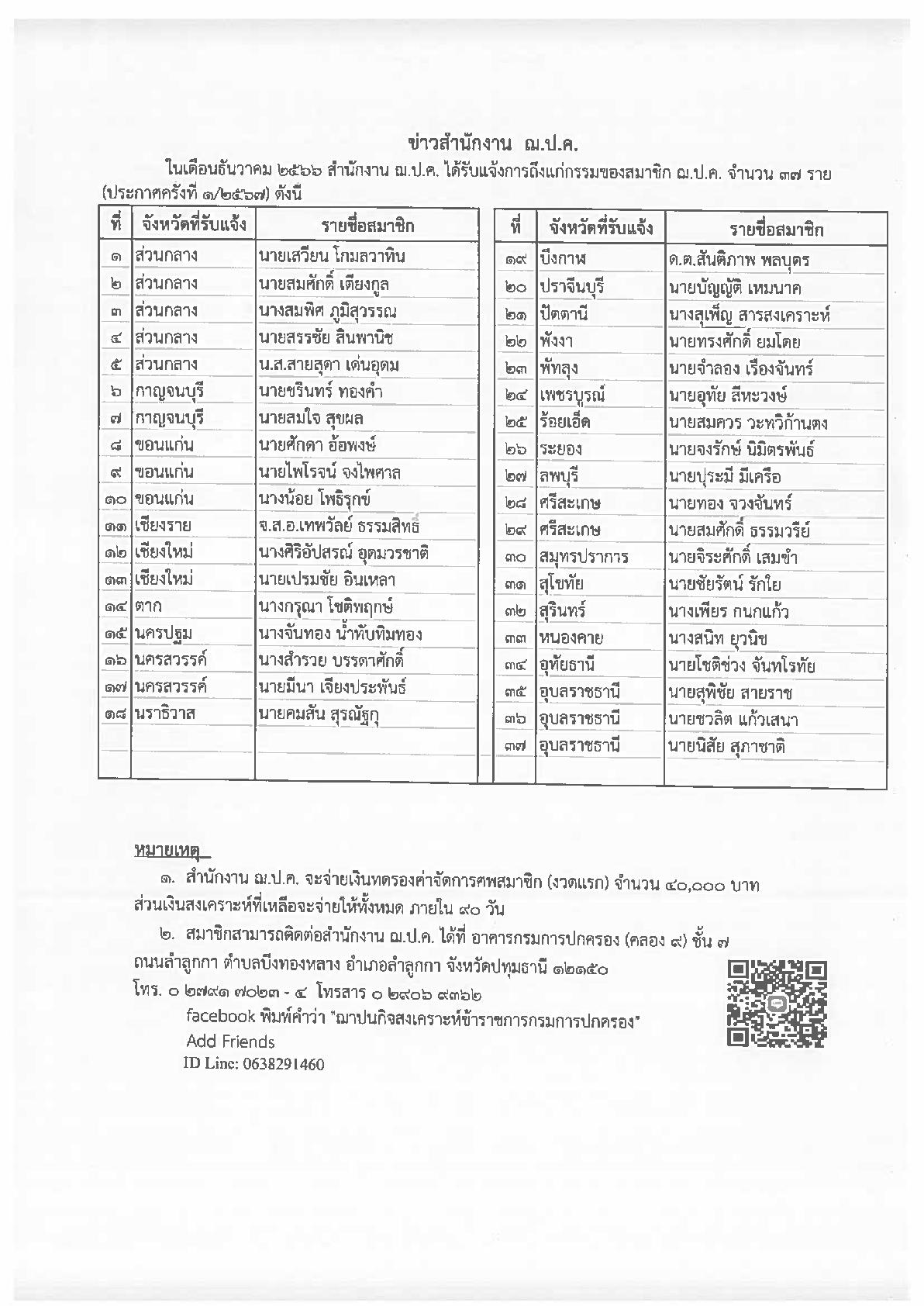 ประกาศสำนักงาน ฌ.ป.ค. ครั้งที่ 4/2567