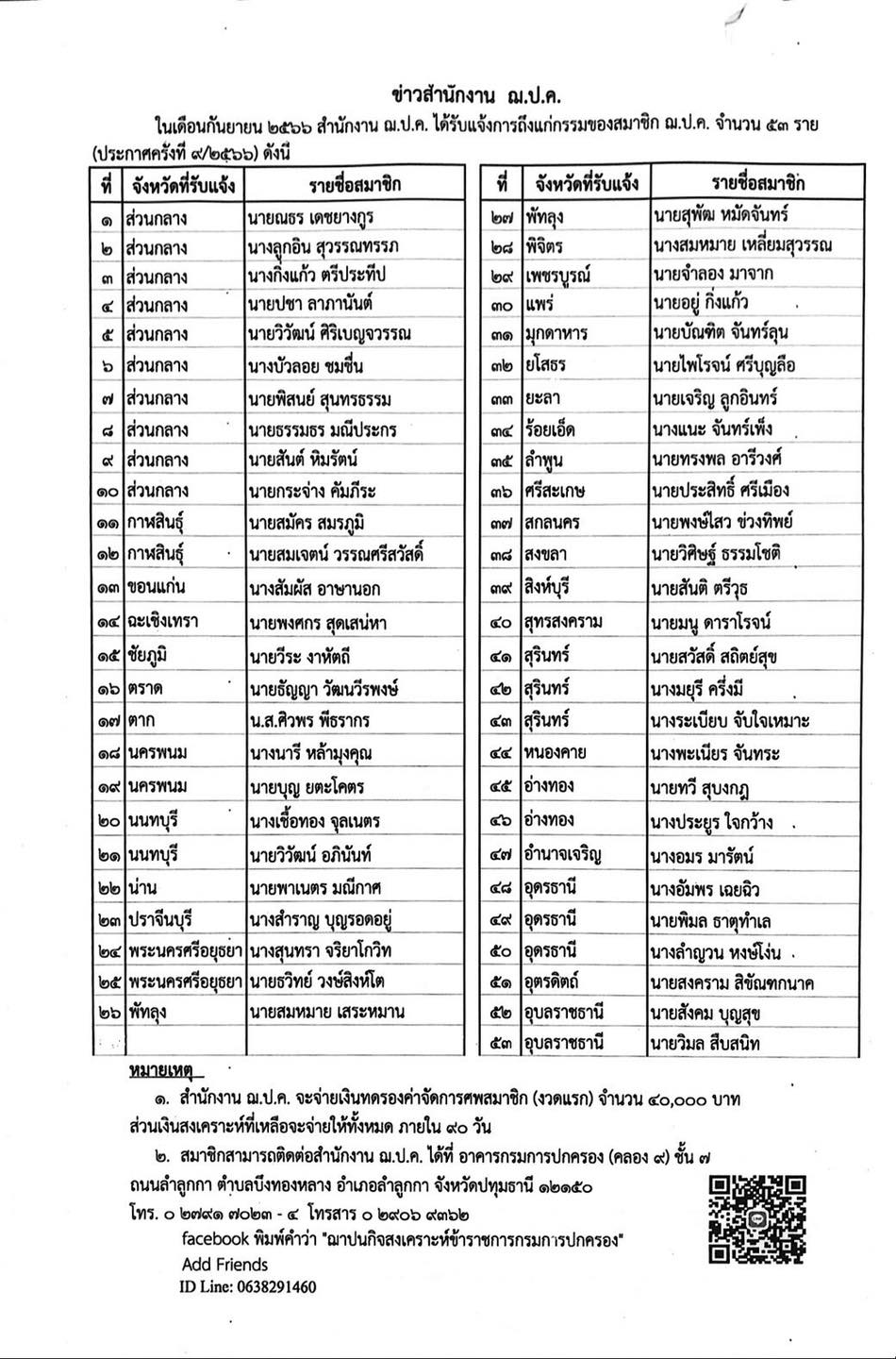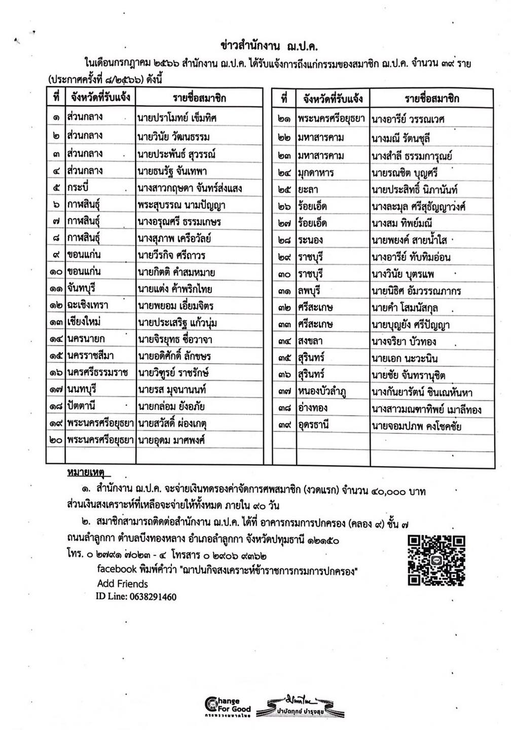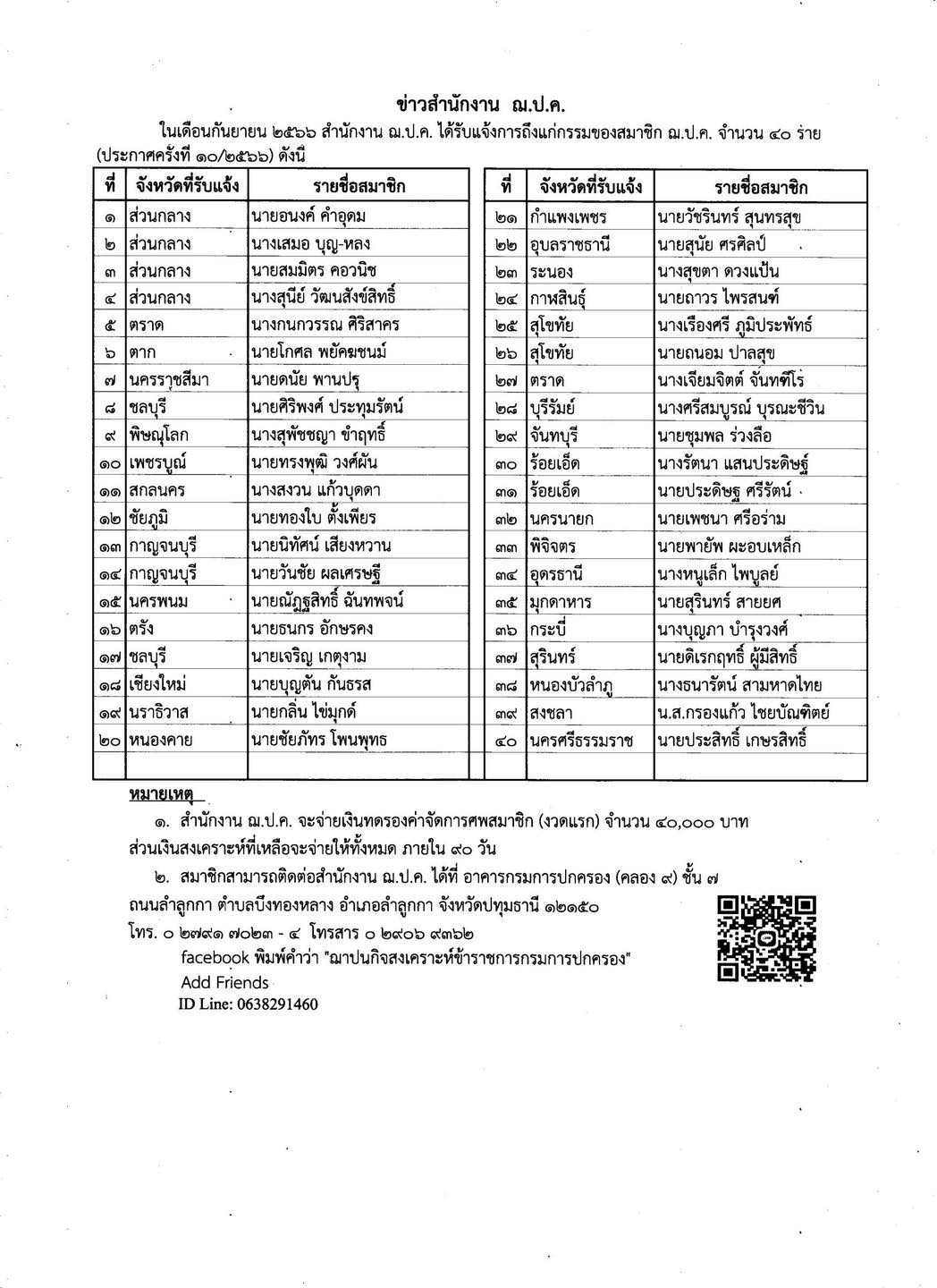 ประกาศสำนักงาน ฌ.ป.ค. ครั้งที่ 11/2566