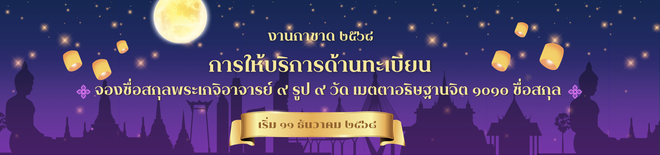 การให้บริการด้านทะเบียนในงานกาชาด ๒๕๖๘ จองชื่อสกุลพระเกจิอาจารย์ ๙ รูป ๙ วัด...
